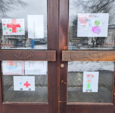 Die SchĂŒlerinnen und SchĂŒler der Grund- und Mittelschule Kirchheim waren so lieb, uns wunderschöne Bilder zu malen. Diese schmĂŒcken nun die FensterflĂ€chen der neuen RĂ€ume â bunt, kreativ und voller Zukunft.